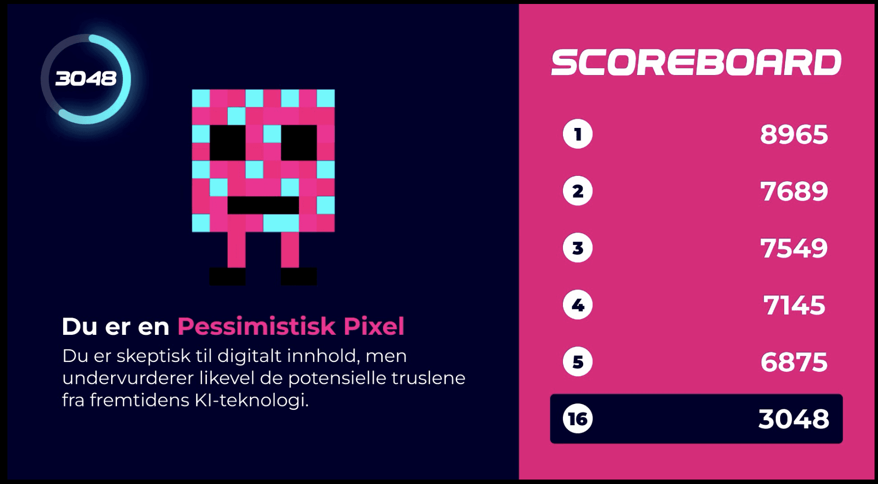 Visitors left the installation more curious, more engaged and in many cases more critical of the images they encounter online. Feedback highlighted increased awareness, stronger competitive motivation, and a desire to replay the game.