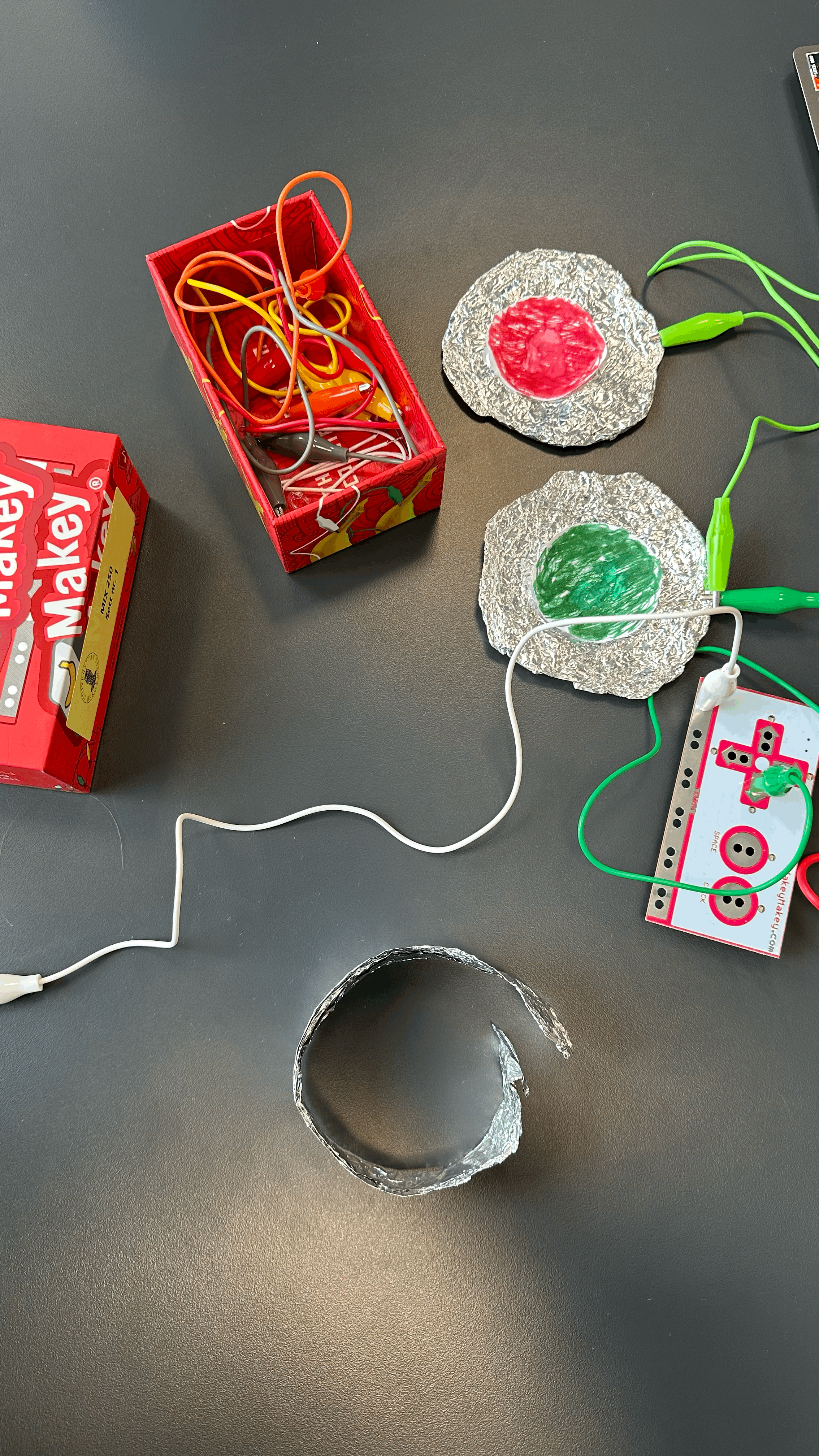 We started our iterations and usertesting using MakeyMakey. MakeyMakey is an invention kit that lets you turn everyday conductive objects into keyboard or mouse inputs using simple alligator-clip cables. This let us test the buttons before creating the big tactile ones.